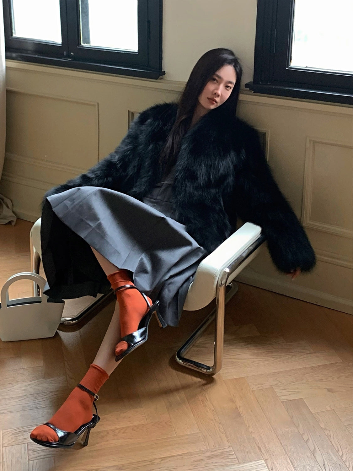 The coat’s natural fur flow creates a dynamic, high-fashion look, capturing light with every motion — a subtle statement of modern luxury.