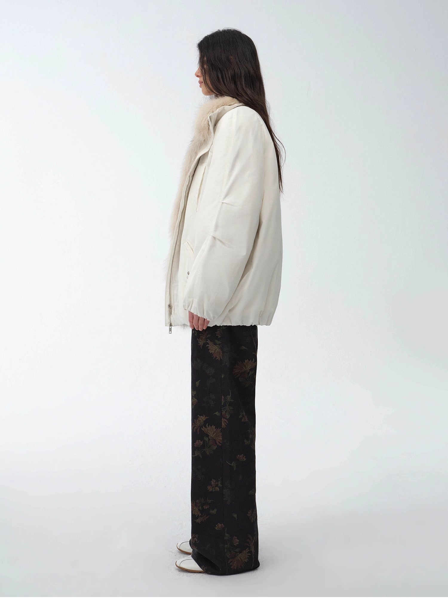 Collar: High-quality two-tone fox fur, detachable for versatile styling.