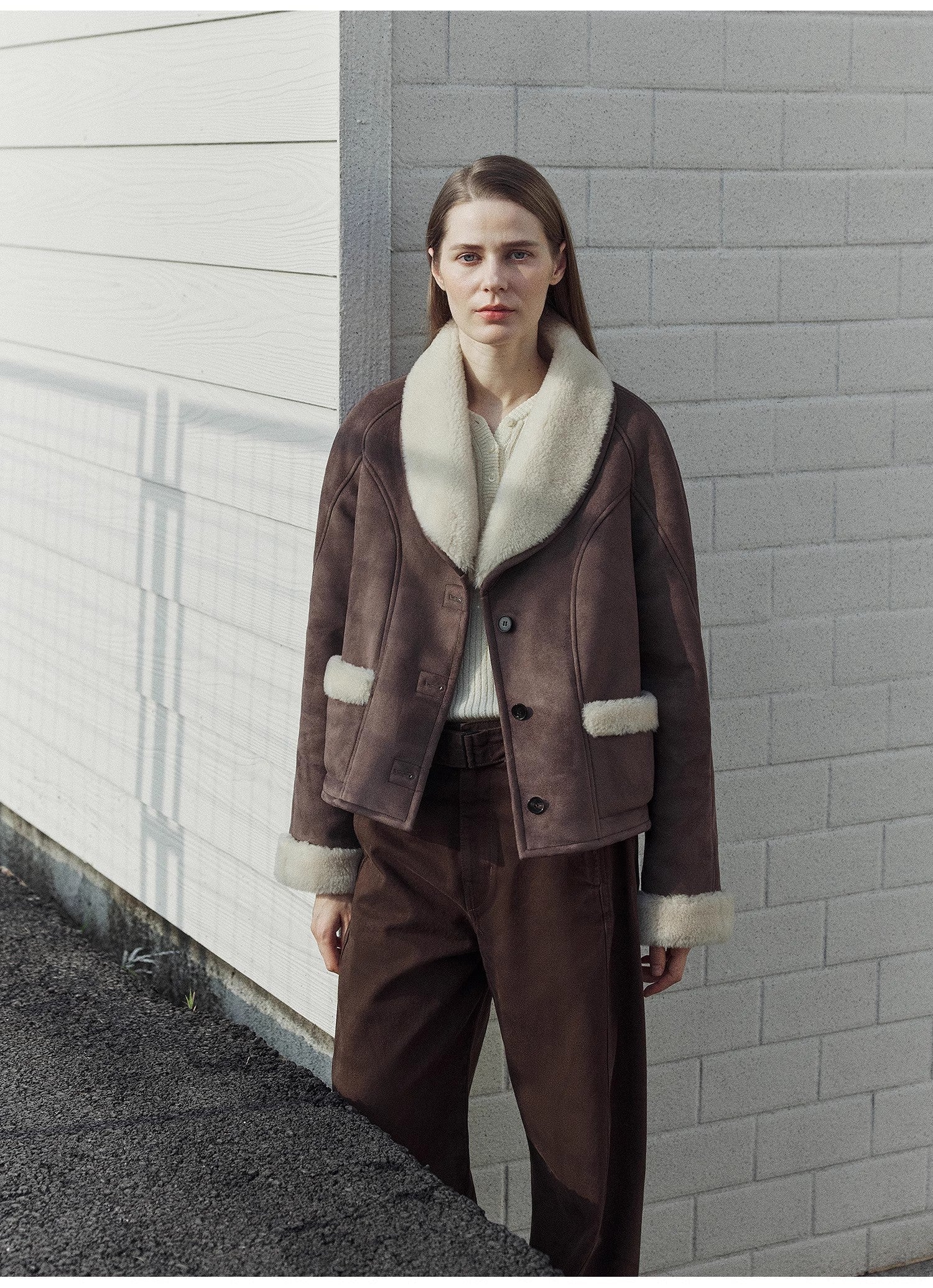 Retro Chic Aesthetic: Washed denim-style cotton exterior with curly wool lining and suede accents