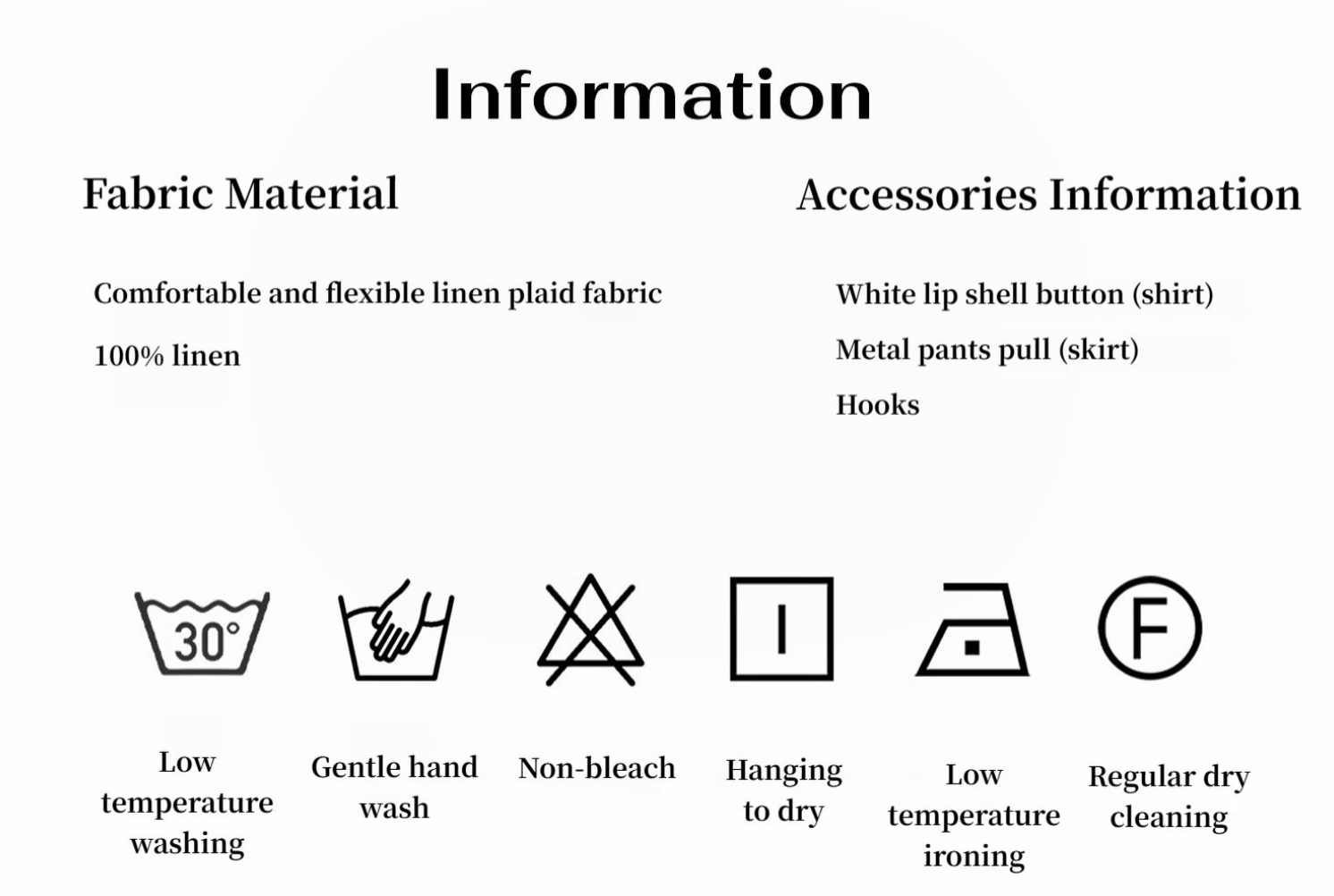 Plaid Sketch Vintage Linen Two-Piece Set – Retro Check Shirt & Skirt