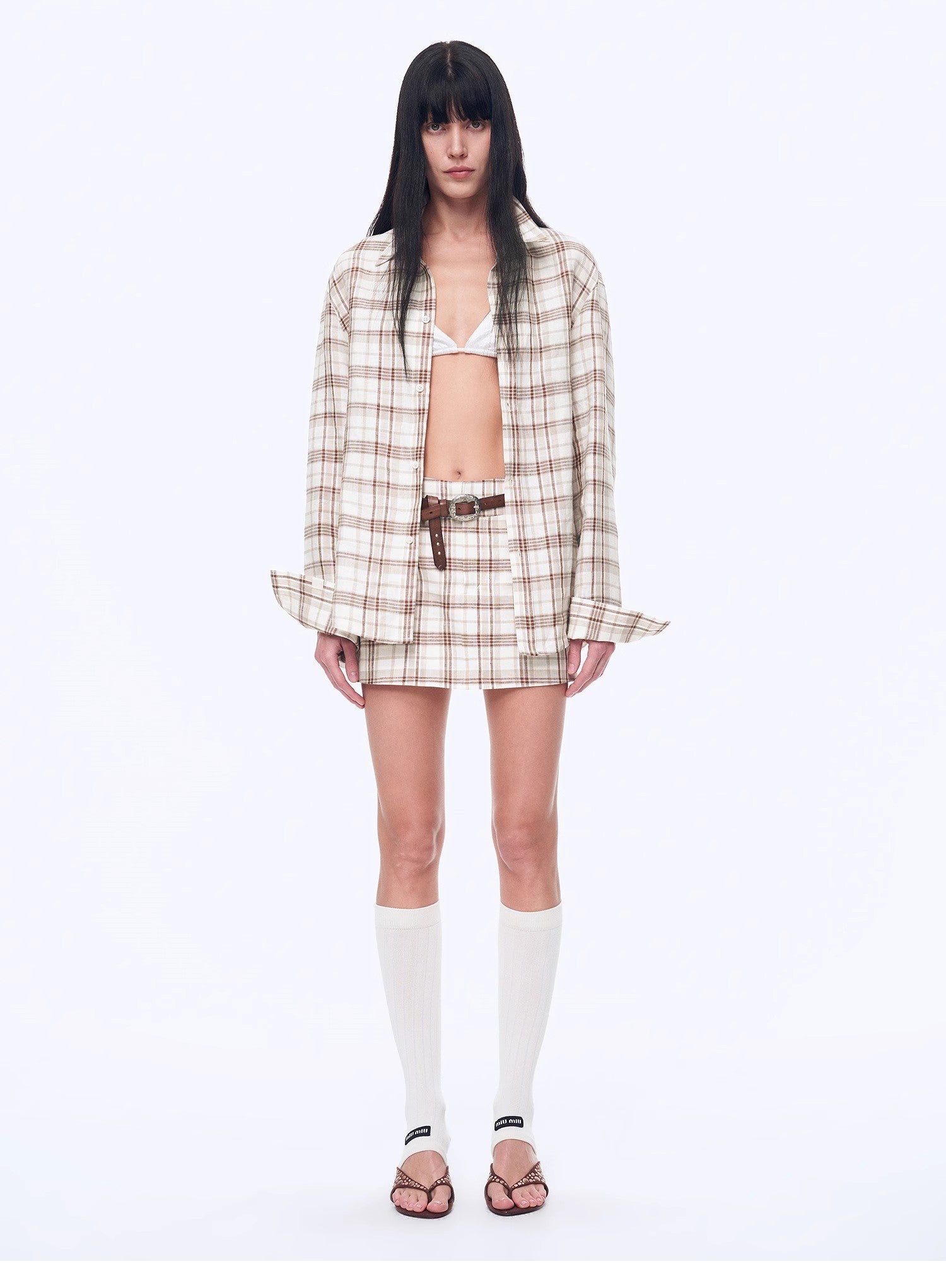 Set Components: Coordinated vintage plaid shirt + elegant skirt