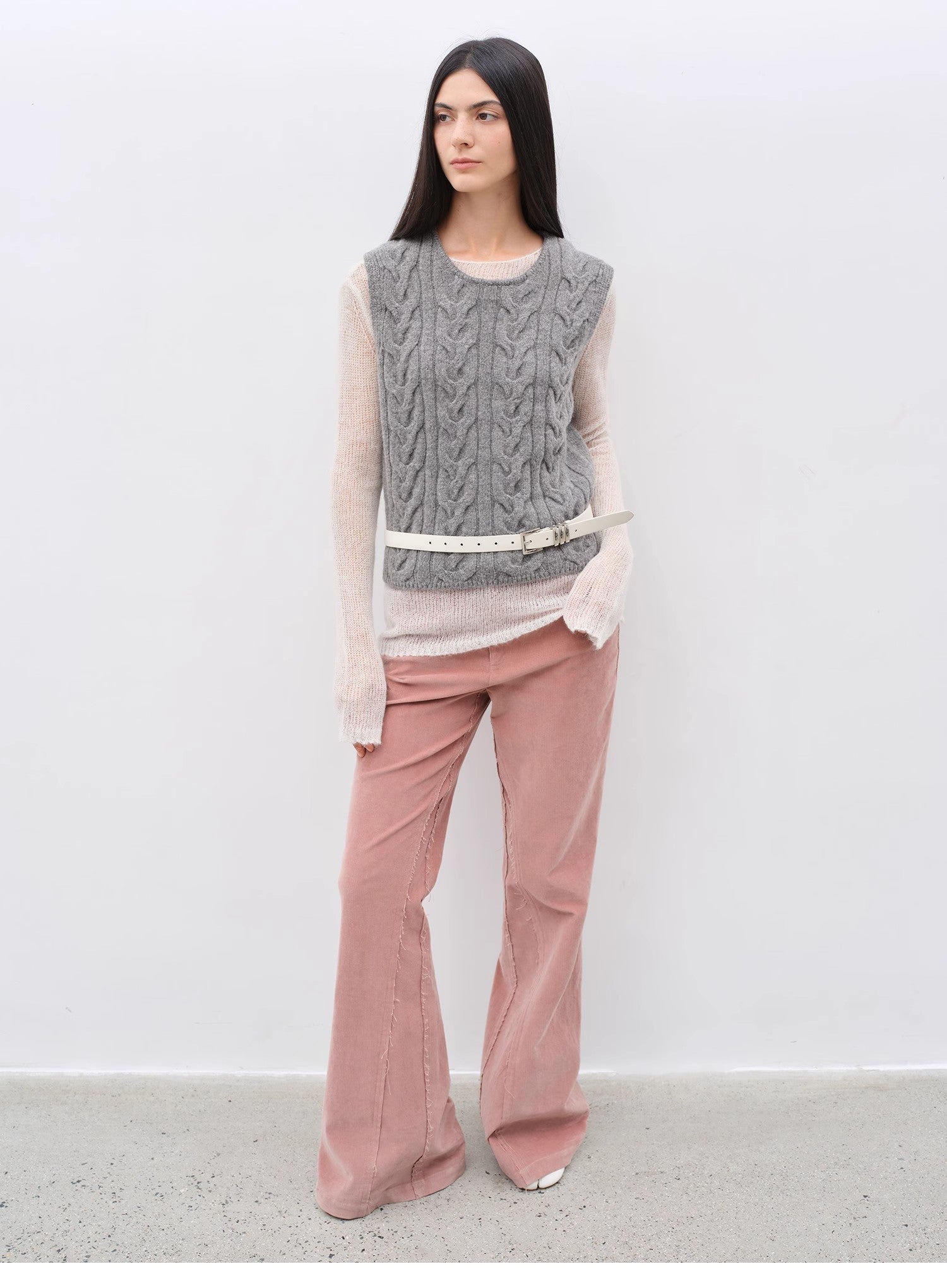 Silhouette: Slim, flared legs with a vertical velvet stripe pattern for a visually elongating effect