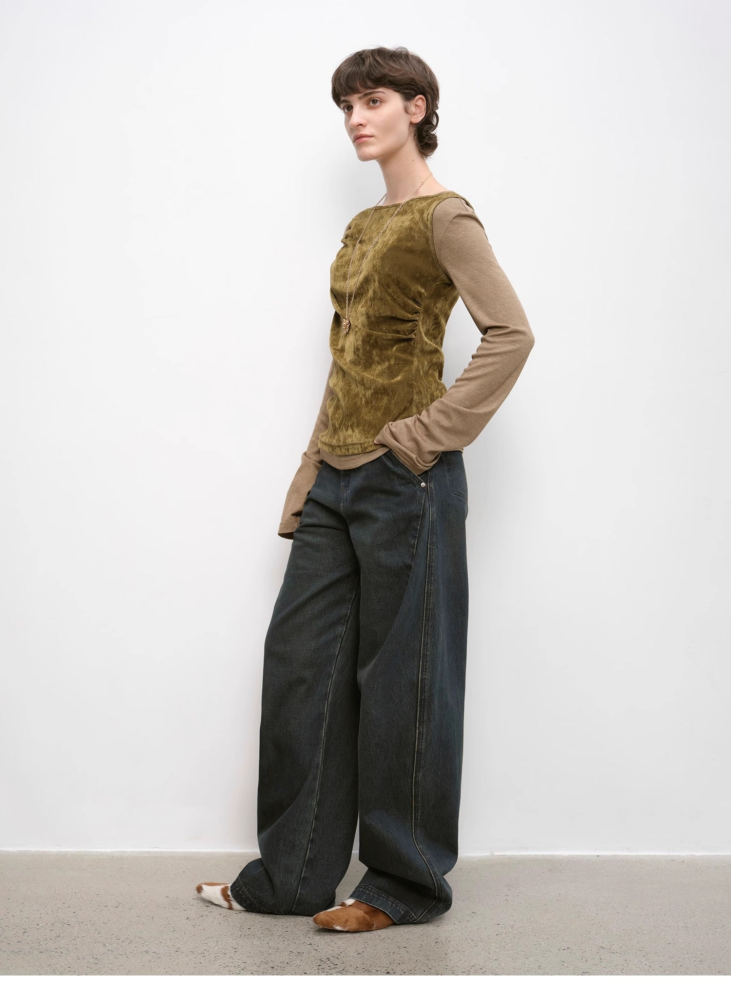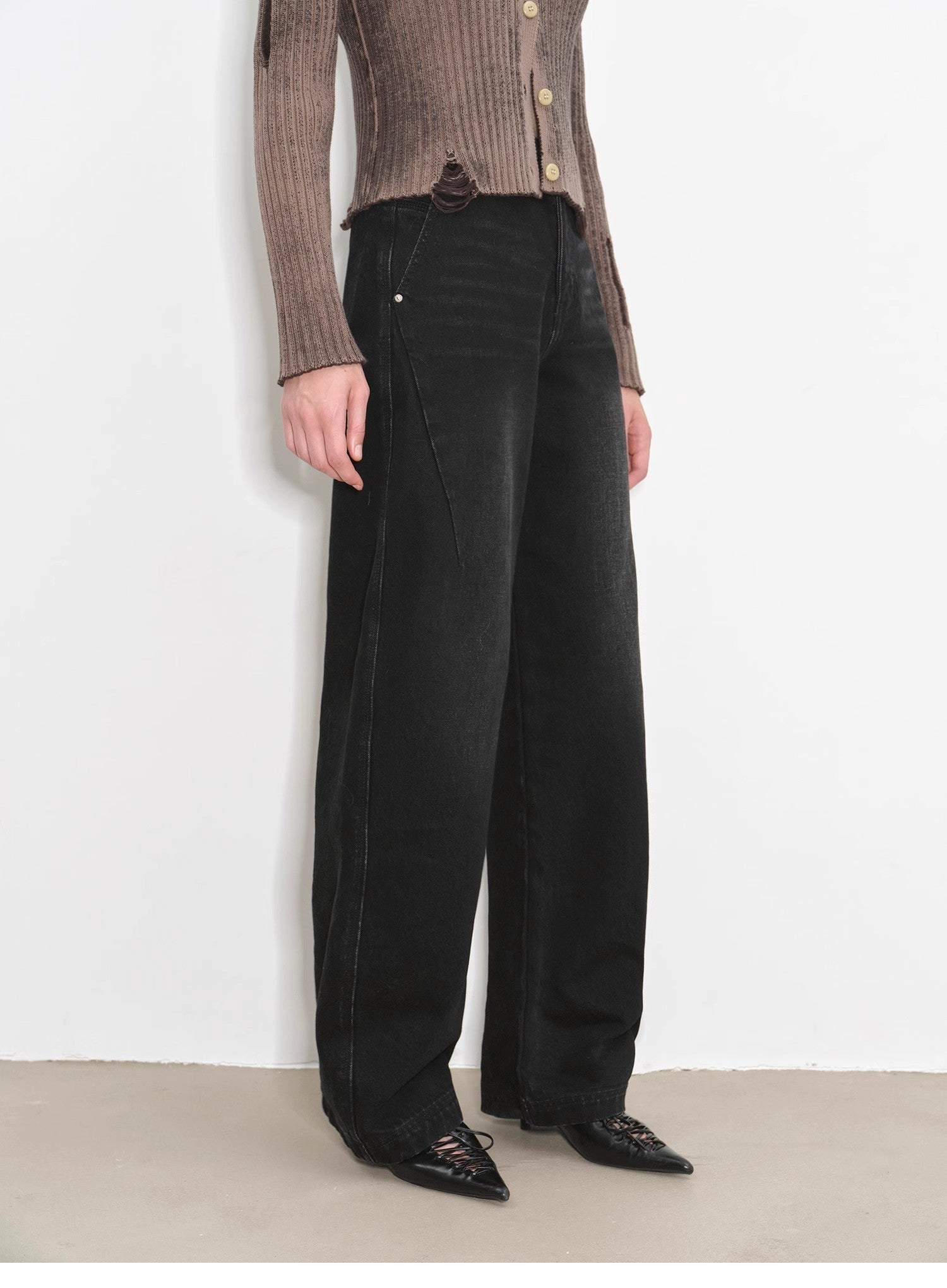 Mid-to-low waist straight-leg fit — naturally sculpts and elongates the legs for a slimming effect.