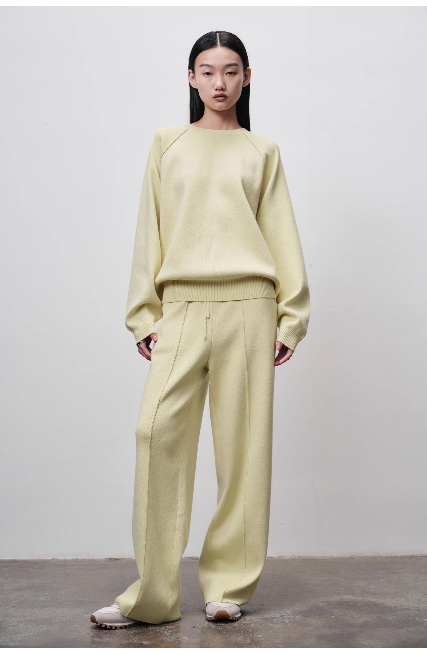 Winter Morning Sunshine Knit Pants – Wool Blend Slim Straight Fit